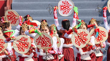 3月21日,在四川省兴文县大坝苗族乡晏州社区,大坝高装非遗巡游队伍中的苗族群众载歌载舞。