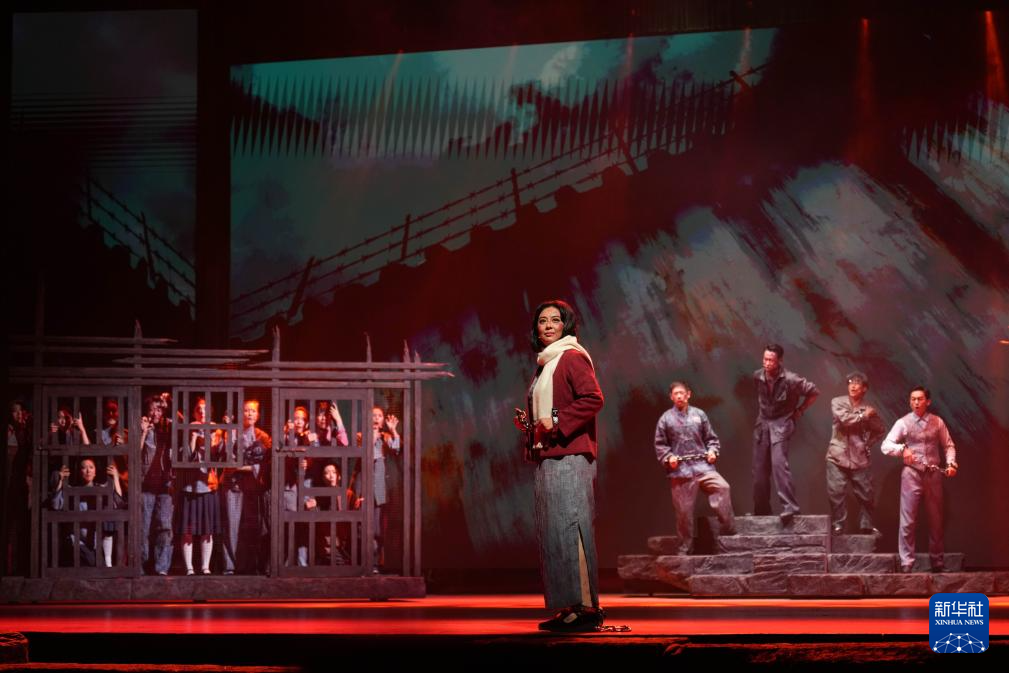 3月27日,演员在中南大学天心校区礼堂演出2025版话剧《红岩》。