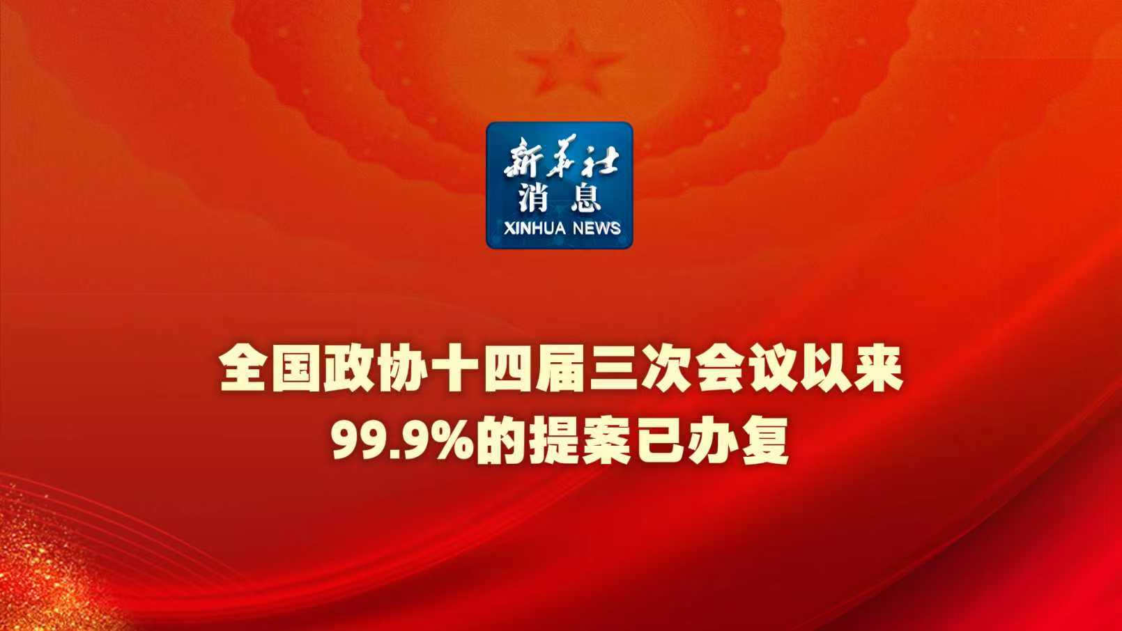 新华社消息丨全国政协十四届三次会议以来99.9%的提案已办复