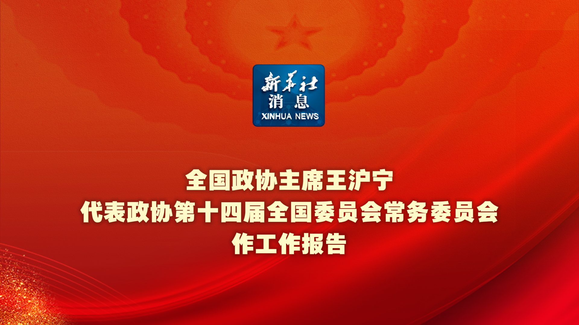 新华社消息丨全国政协主席王沪宁代表政协第十四届全国委员会常务委员会作工作报告