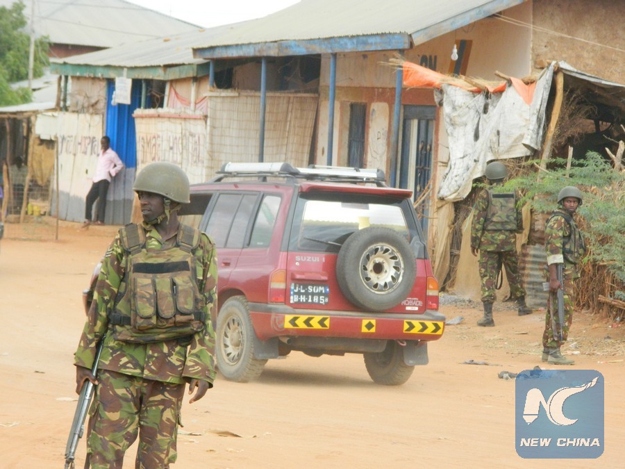 Kenya Defence Forces (KDF) soldiers beef up security in Mandera, Kenya, July 8, 2015. The town's proximity to Somalia makes it an easy target for Al-Shabaab militants to carry out its attacks. (Xinhua/Stephen Ingati)