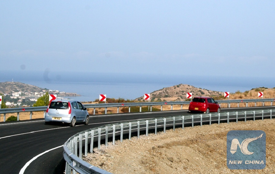 Cars travel on the road leading to the Limnitis/Yesilirmak crossing in Cyprus, Oct. 14, 2010. (Xinhua/Wang Qiang)