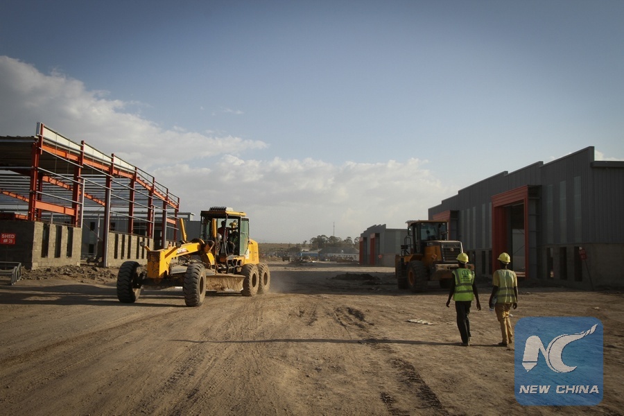 Workers are seen at a construction site in Hawassa, Ethiopia, Feb. 3, 2016. The Hawassa Industrial Park is being built by China Civil Engineering Corporation (CCECC) with a focus on garment manufacture and agro-industry.The park is located 280 km south of the Ethiopian Capital Addis Ababa at the out skirts of the Southern Nations Nationalities and Peoples Region (SNNP) capital Hawassa. (Xinhua /Michael Tewelde)
