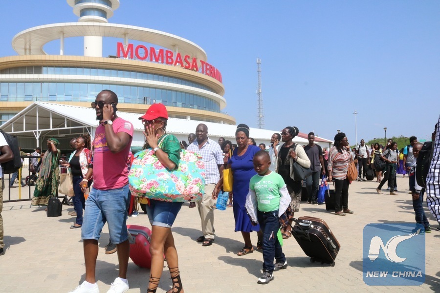 Local tourists are seen at the Standard Gauge Railway (SGR) train terminus at Miritini in Mombasa, Kenya, Dec. 18, 2018. Local and international tourists are on a tour at the coastal city of Kenya to celebrate the festive season. (Xinhua/Fred Mutune)