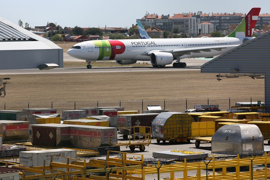 An airplane prepares to take off at the Humberto Delgado Airport in Lisbon, Portugal, on Aug. 12, 2019. (Photo by Pedro Fiuza/Xinhua)