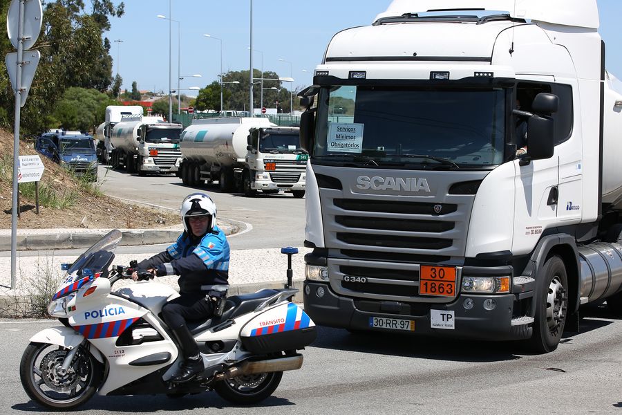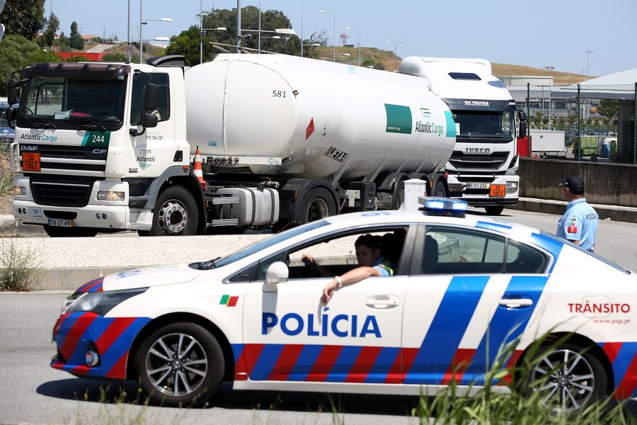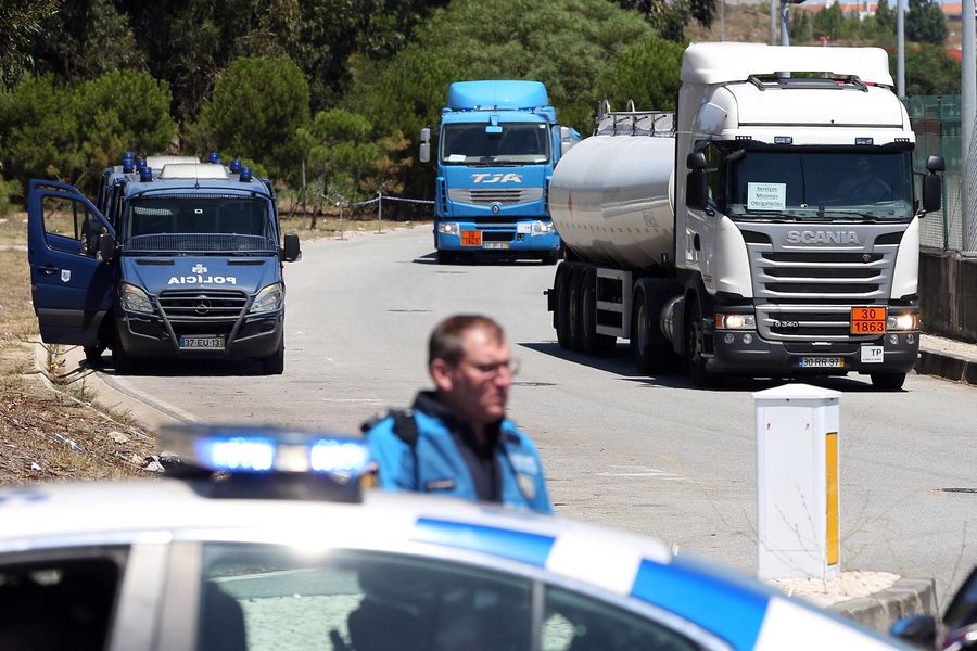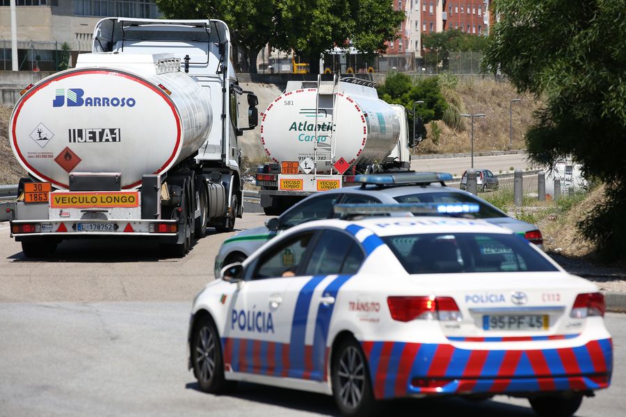 Police escort fuel-tankers leaving the Humberto Delgado Airport in Lisbon, Portugal, on Aug. 12, 2019. (Photo by Pedro Fiuza/Xinhua)