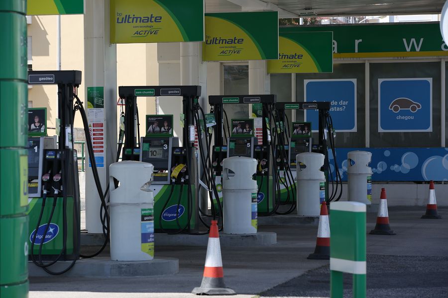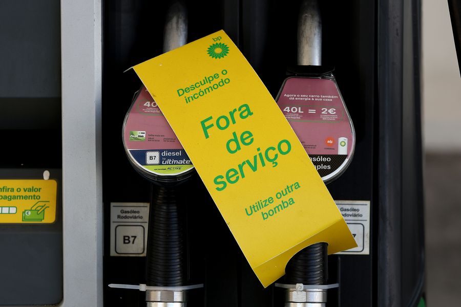 A sign reading "Out of Service" is attached to pumps at a gas station in Lisbon, Portugal, on Aug. 12, 2019. (Photo by Pedro Fiuza/Xinhua)
