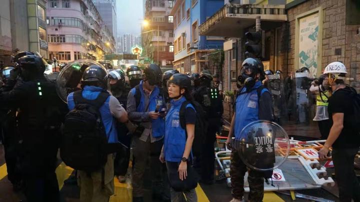 Ko Chun Pong, a superintendent of Hong Kong Police Public Relations Branch, said reporters are advised to keep an appropriate distance from police during their operations.