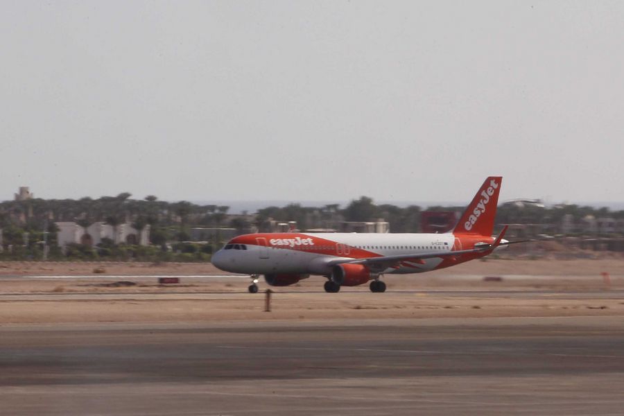 A plane of British airline company Easyjet takes off at the airport of Sharm el-Sheikh, Egypt's Red Sea resort, on Nov. 6, 2015, as Britain suspended all flights between the two countries due to a Russian airliner crash on the Sinai peninsula. (Xinhua/Ahmed Gomaa)