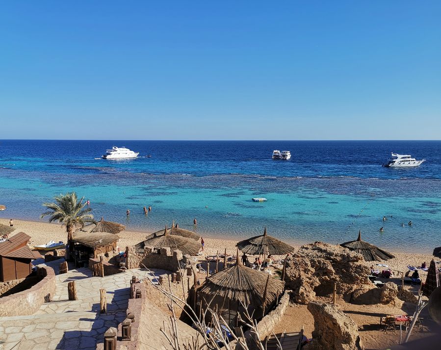 A look at Red Sea beach from the Farsha Cafe in Sharm el-Sheikh, a famous resort in Egypt's Sinai peninsula, on March 8, 2019. (Xinhua/Wu Huiwo)