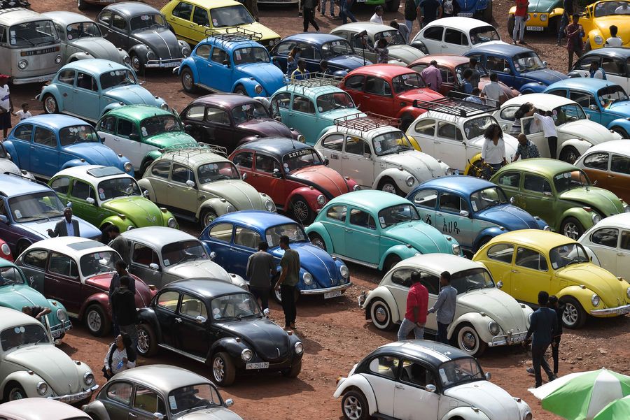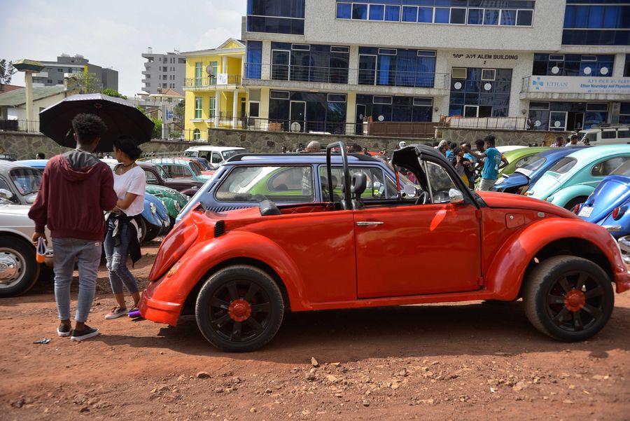 People attend Ethiopia's Volkswagen Beetles car fair in Addis Ababa, Ethiopia, Dec. 21, 2019. (Xinhua/Michael Tewelde)