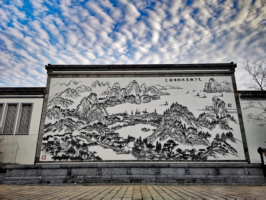 A giant iron painting displayed in the Jiuci Old Town, the city of Wuhu, eastern China's Anhui Province, Jan. 3, 2020. (Xinhua/Chen Shangying)