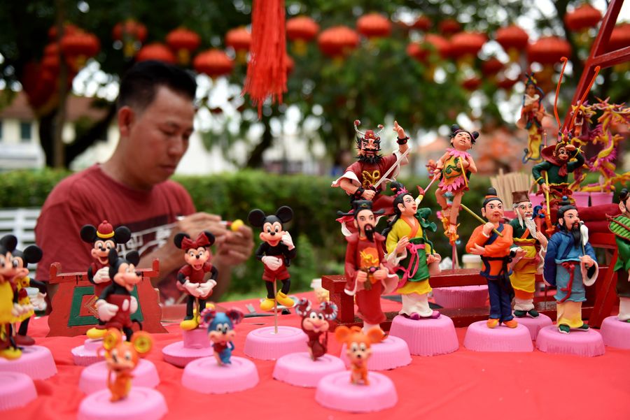 A master makes dough figurines at the Penang Chinese New Year Celebration "Miao Hui" in Penang, Malaysia, Feb. 2, 2020. (Photo by Chong Voon Chung/Xinhua)