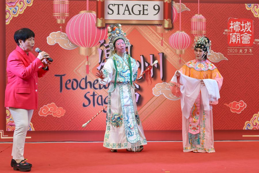 Actors and actresses perform Teochew opera at the Penang Chinese New Year Celebration "Miao Hui" in Penang, Malaysia, Feb. 2, 2020. (Photo by Chong Voon Chung/Xinhua)