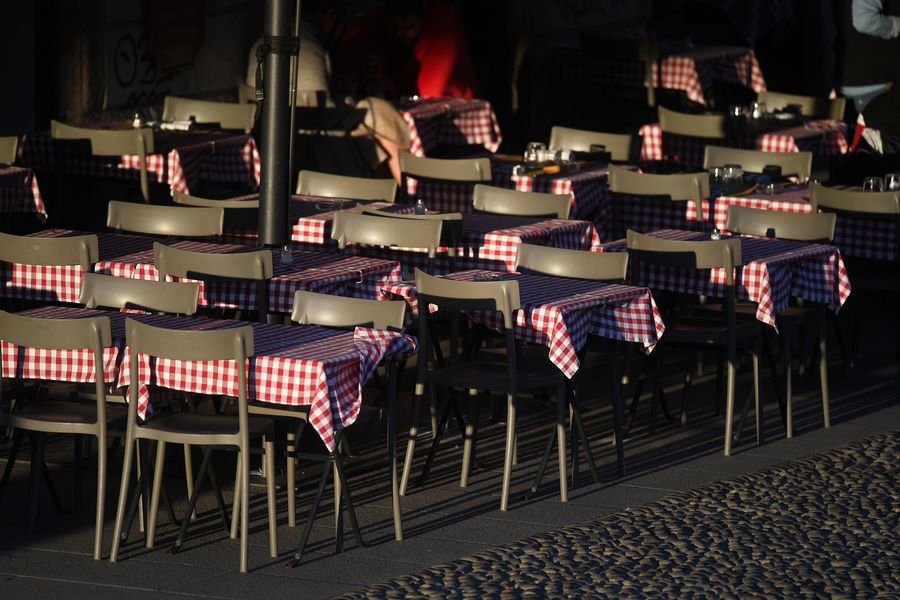 Photo taken on Feb. 26, 2020 shows the empty tables of a restaurant in Milan, Italy. The government has placed 11 towns, 10 in Lombardy and one in Veneto, under lockdown in an effort to contain the epidemic. (Photo by Daniele Mascolo/Xinhua)