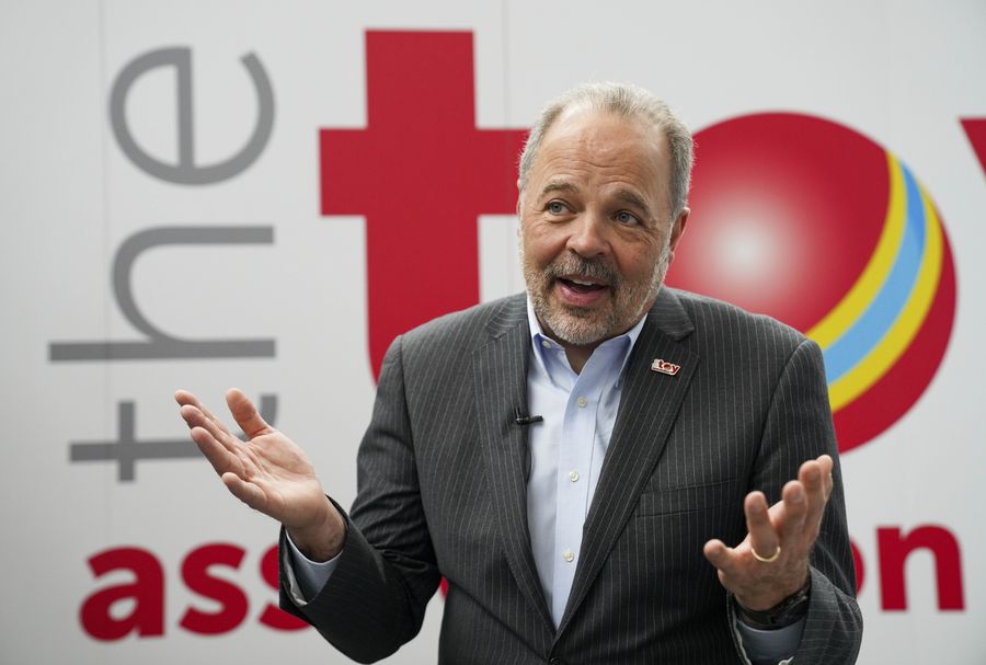 Steve Pasierb, president and CEO of the Toy Association, speaks during an interview with Xinhua at the 2020 Toy Fair New York in New York, the United States, Feb. 25, 2020. (Xinhua/Wang Ying)