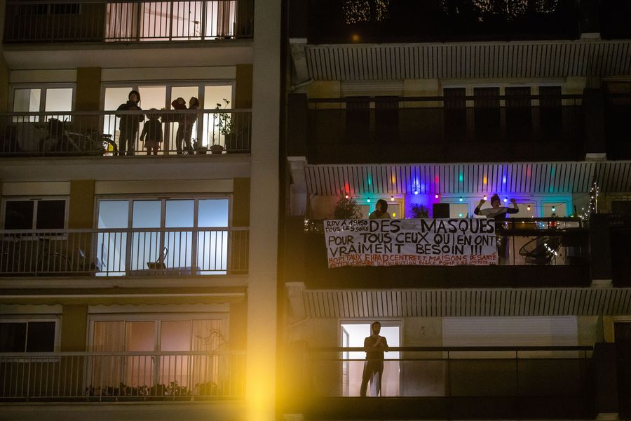Residents applaud to pay tribute to medical staff in Clichy, France, March 22, 2020. (Photo by Aurelien Morissard/Xinhua)