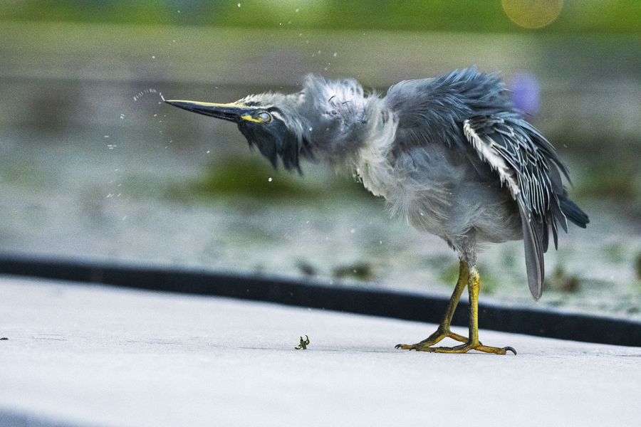 A striated heron (Butorides striata) is seen at a pond outside Singapore's ArtScience Museum on April 1, 2020. (Photo by Then Chih Wey/Xinhua)