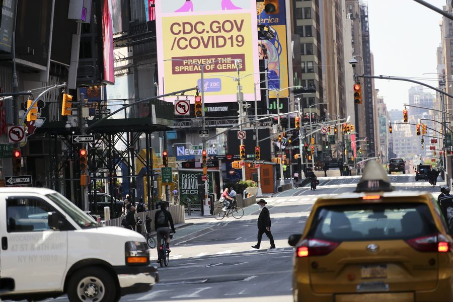 Photo taken on May 4, 2020 shows Times Square in New York, the United States. (Xinhua/Wang Ying)