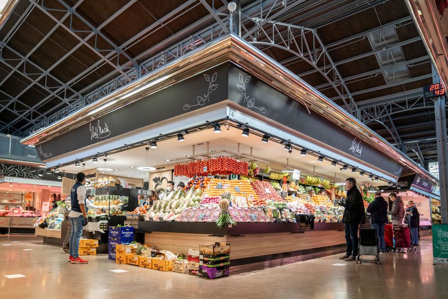 People shop at the market of the Ninot in Barcelona, Spain, May 8, 2020. (Barcelona City Hall/Handout via Xinhua)