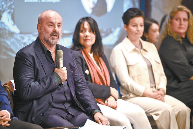 导演达维德·利维摩尔(左一)介绍创作构思。 北京日报记者 方非摄
