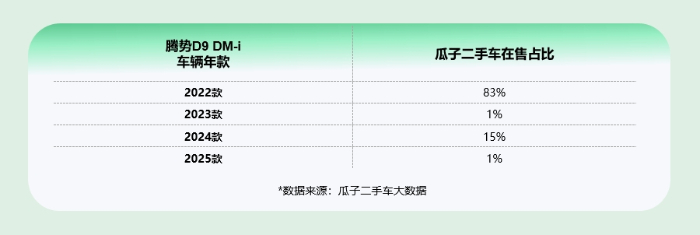 基于瓜子二手车大数据分析,腾势D9的插混版本,因其兼顾经济性与持续续航能力,在市场上更受欢迎,二手市场上的车源也以该插混车型为主,这里我们也主要推荐插混车型。