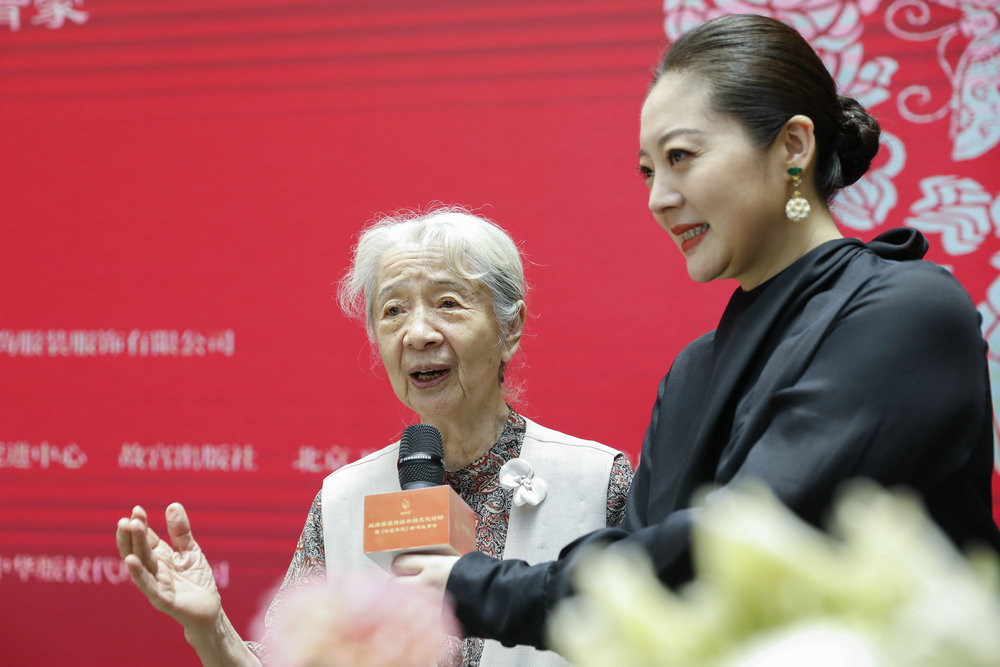 7月13日,著名艺术设计家、教育家常沙娜(左)在活动现场致辞。