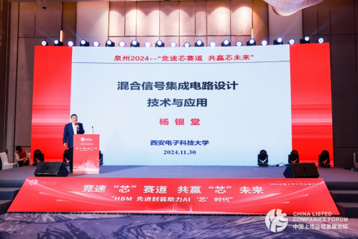 西安电子科技大学原副校长、党委副书记,晋江市政府专家顾问杨银堂带来《混合信号集成电路设计技术与应用》的主旨演讲。新华网发