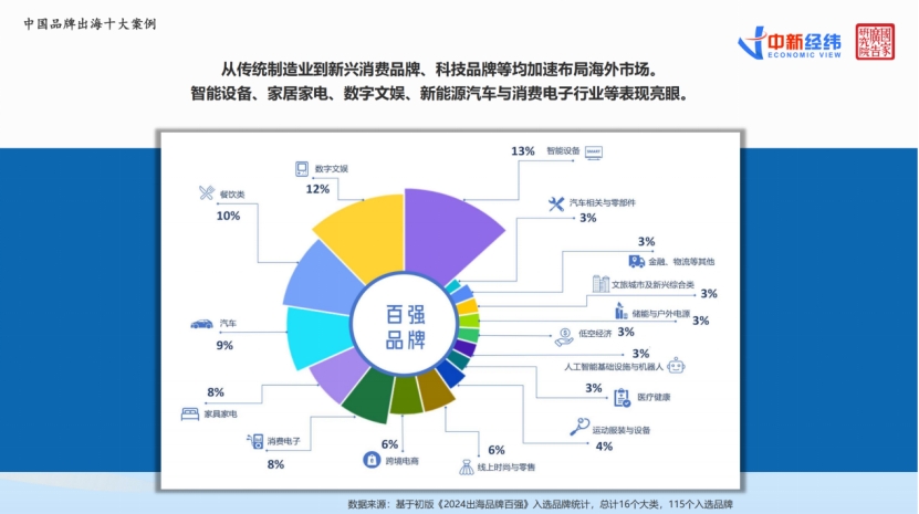 从《报告》看,中国品牌海外布局不再局限于传统制造业,更多新兴行业如新能源汽车、智能设备、数字文娱等均加速拓展全球市场。