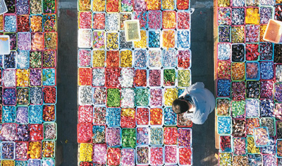 春节临近,内蒙古自治区呼伦贝尔市扎兰屯市城乡集市年味浓厚。图为市民在扎兰屯市步行街选购糖果。