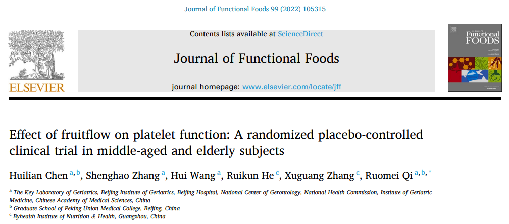 此次汤臣倍健申报的新络素片,以Fruitflow®(轻络素)针对中国人群血流健康影响的临床验证及相关机制研究,填补了国内该功能评价体系的空白,研究成果相继发表在《JournalofFunctionalFoods》《FrontiersinNutrition》等国际权威杂志。