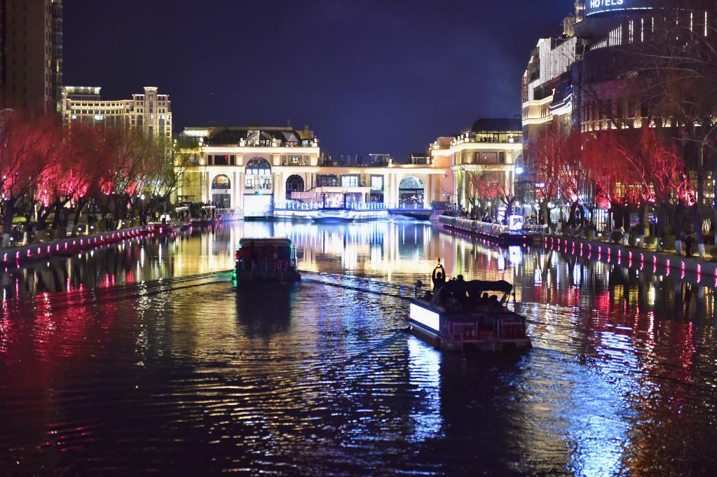 2023年3月18日,游船行驶在亮马河上。新华社记者陈钟昊 摄