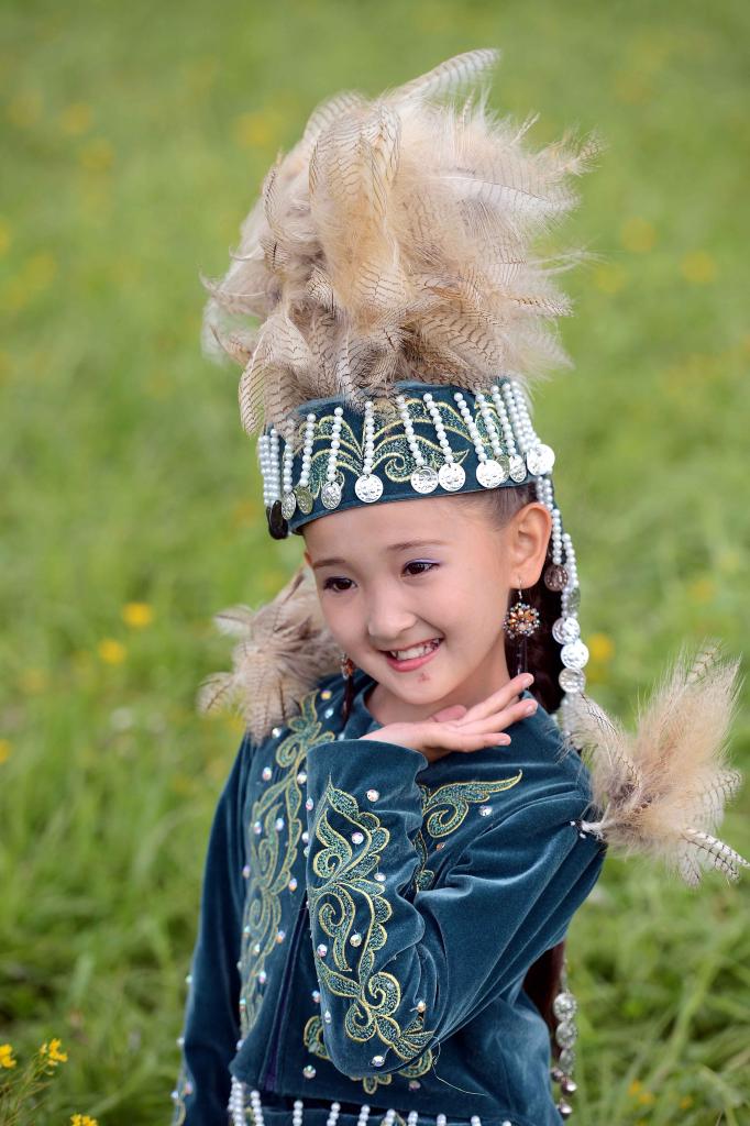 一名身着盛装的哈萨克族小女孩。新华社记者 沙达提 摄