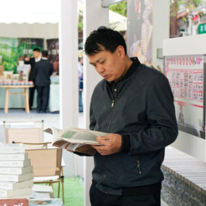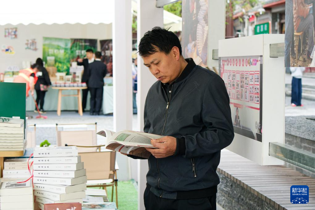 4月22日,市民在云南省昭通市全民阅读大会活动现场阅读书籍。