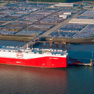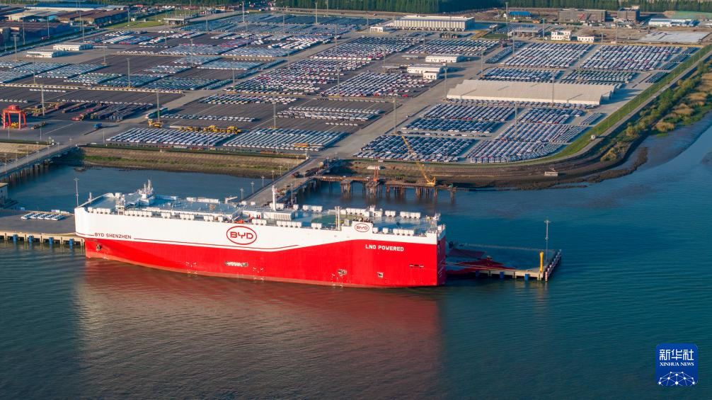 近日,江苏苏州港太仓港区码头一片繁忙,全球最大装载量汽车运输船“深圳号”在此进行装车作业,随后将装载着比亚迪汽车开启首航。该船全长219.9米、宽37.7米,配备16层甲板,可装载9200辆标准车。由比亚迪自主运营的“深圳号”,系其投运的第四艘专业汽车滚装船。