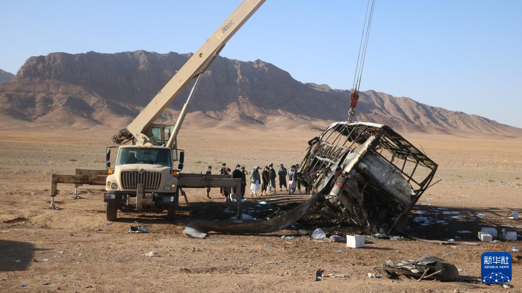 这是8月20日在阿富汗西部赫拉特省拍摄的事故现场。