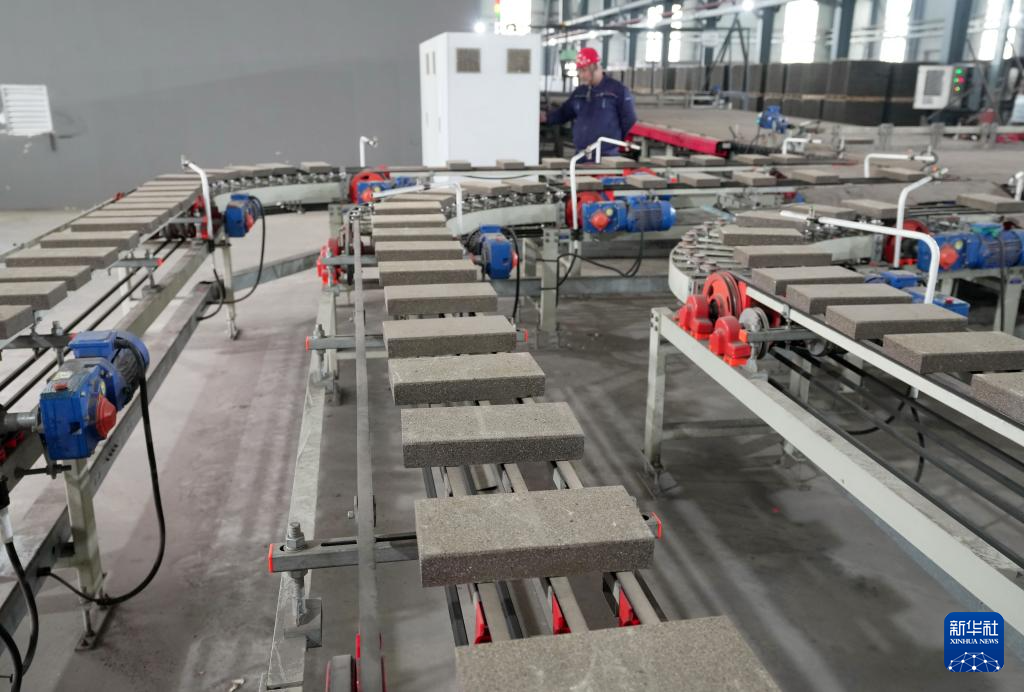 4月9日,工人在河北省迁安市一家以钢渣等固废为原料生产“钢砖”的企业生产车间工作。