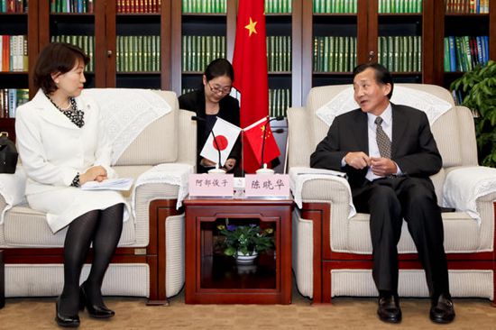 本网讯 4月3日下午,农业部副部长陈晓华礼节性会见了日本农林水产省副大臣阿部俊子,双方就中日农业交流与合作问题交换了意见。