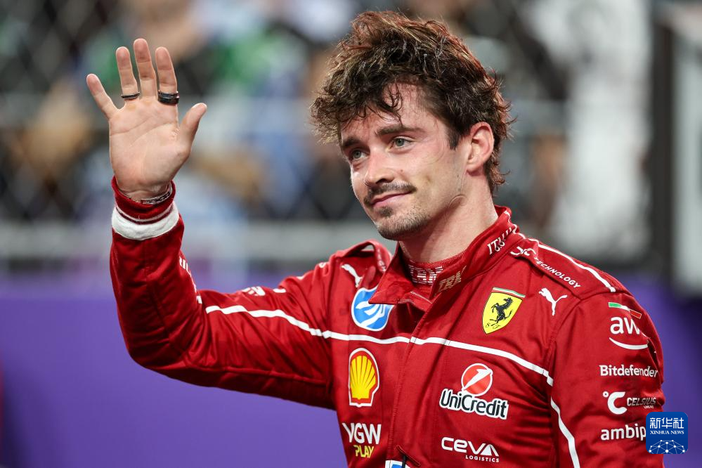 4月20日,法拉利车队摩纳哥车手勒克莱尔在赛后致意。