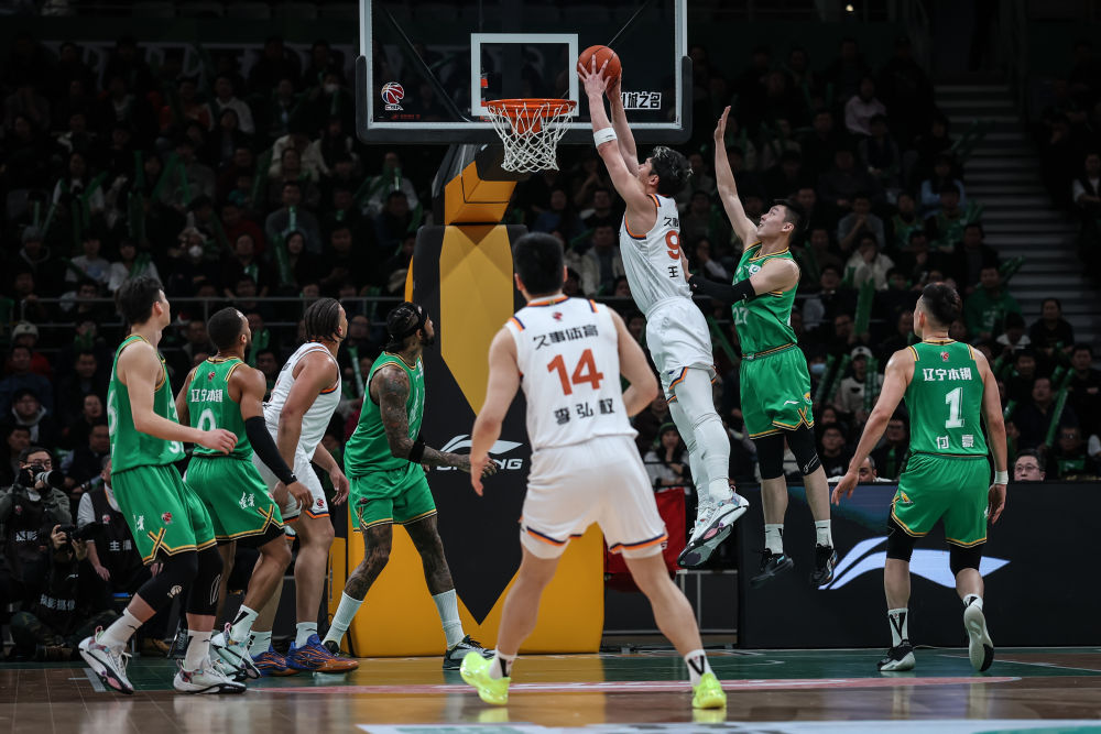 2025年12月31日,上海队球员王哲林(右三)在比赛中扣篮。新华社记者 潘昱龙 摄