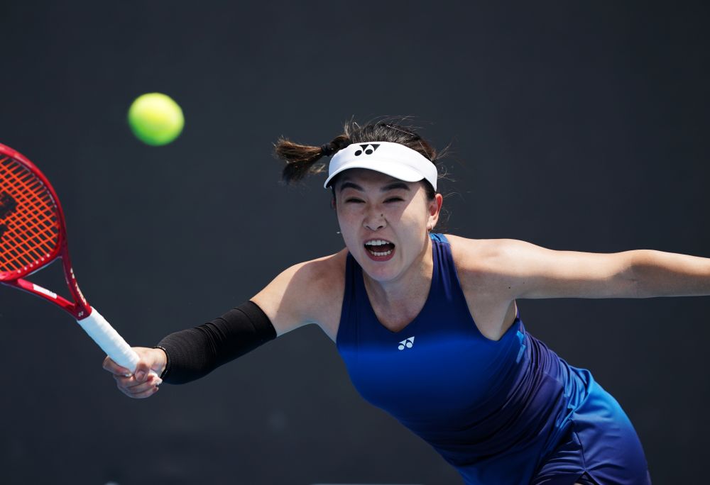 1月14日,袁悦在与阿根廷选手卡莱的比赛中回球。新华社发(王申摄)
