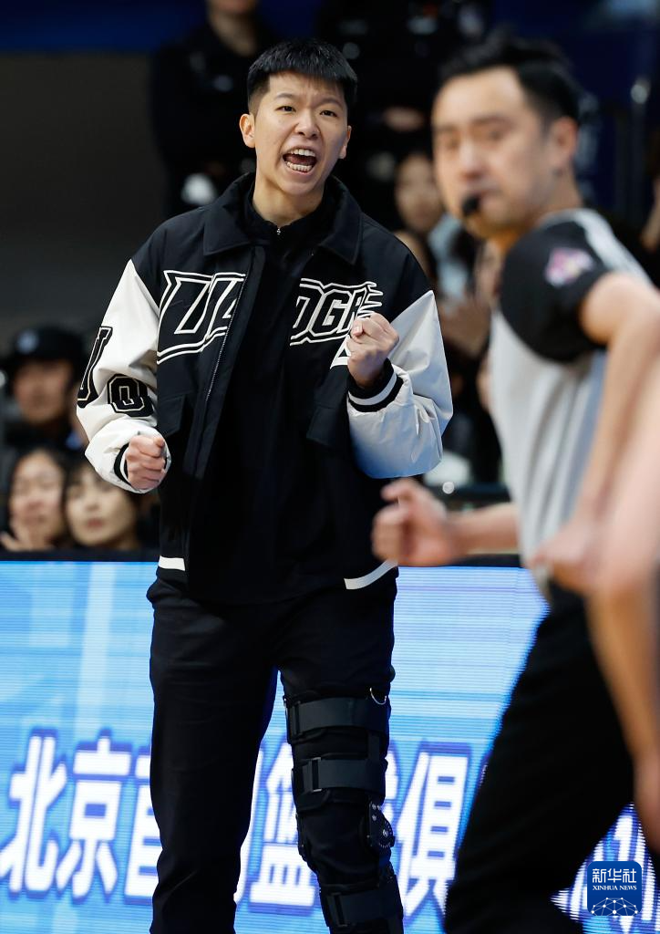 1月20日,广东东莞新彤盛队球员杨力维在比赛中观看记分牌。
