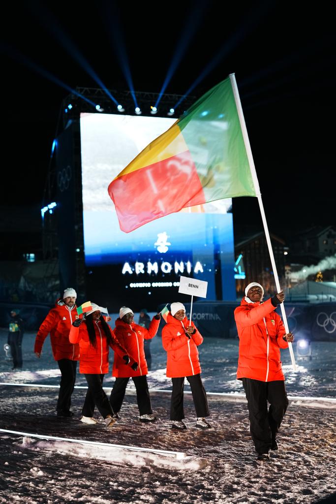 2月6日,贝宁体育代表团参加入场仪式,他们将派出一人参加男子高山滑雪的比赛。新华社记者 胡超 摄
