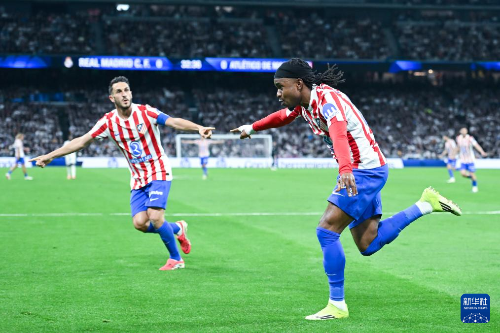 3月22日,马德里竞技队球员卢克曼(右)庆祝进球。