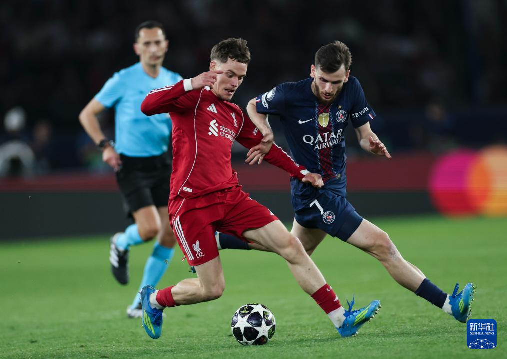 当地时间4月8日,在法国巴黎进行的2025-2026赛季欧洲足球冠军联赛四分之一决赛首回合比赛中,法甲巴黎圣日耳曼队主场2比0战胜英超利物浦队。