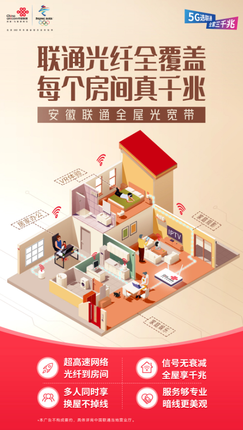受到新冠肺炎疫情影响,安徽联通近日全面推出全屋光宽带FTTR产品,以六大优势为美好“皖”城生活提速。