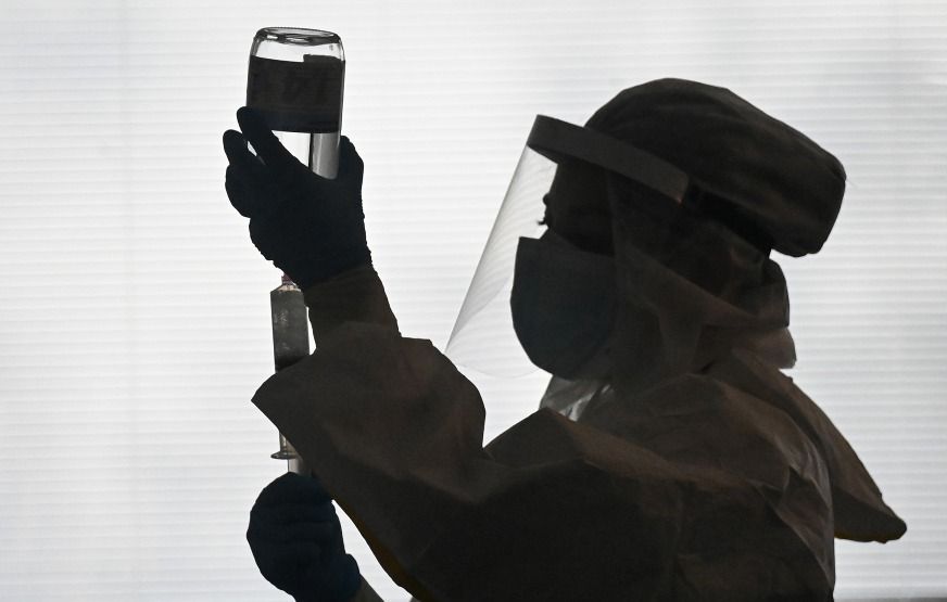 11月12日,医护人员在意大利博洛尼亚的圣奥尔索拉—马尔皮吉医院的新冠隔离区工作。新华社发(詹尼·斯基基 摄)
