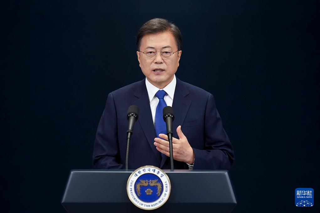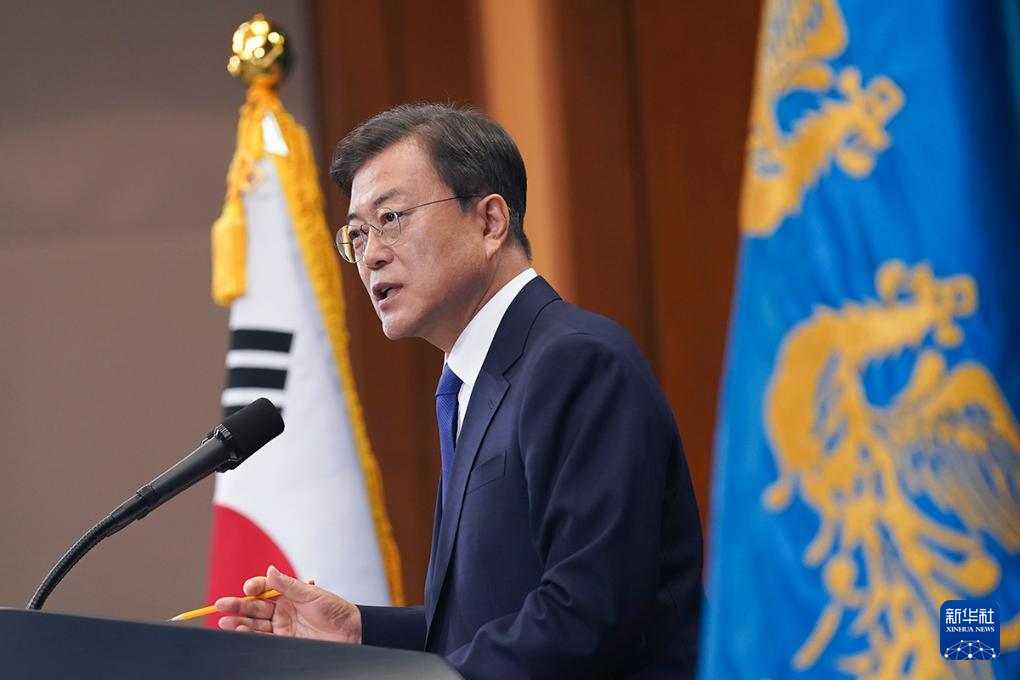 据韩联社4月24日报道,韩国前总统文在寅因涉嫌受贿被检方提起诉讼。这张拍摄于2020年5月10日的资料照片显示,时任韩国总统文在寅在韩国首尔青瓦台发表讲话。新华社发(青瓦台供图)