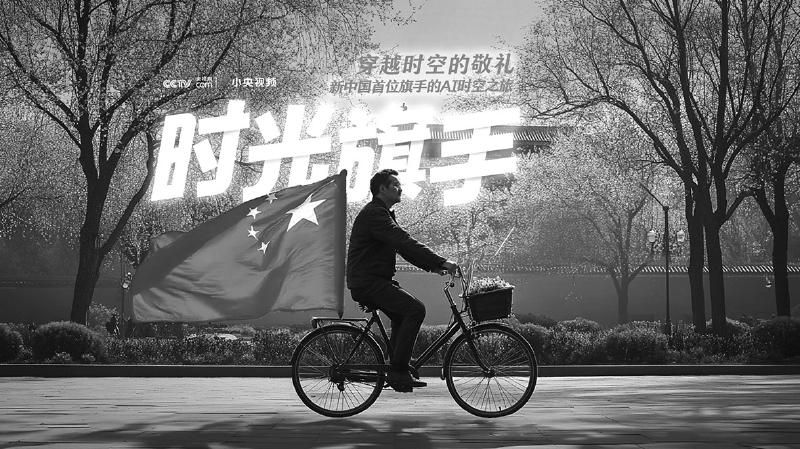 央视网的微短剧《国旗飘扬75年!AI重现首位旗手时空之旅》,用AI重现天安门首位旗手胡其俊26年来升国旗的生动场景。胡其俊的儿子胡克军看着屏幕上父亲熟练地挥臂展旗,心中那份与国旗的特殊记忆再次被唤起,感受到了AI技术带来的巨大情感力量。
