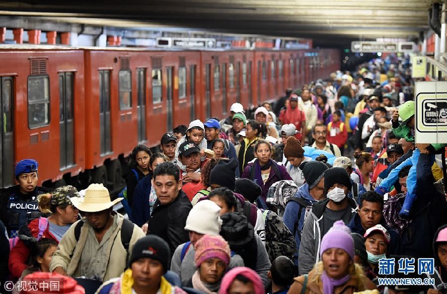 当地时间2018年11月10日,墨西哥墨西哥城,中美洲移民继续向美国边境行进。(图片来源:视觉中国)